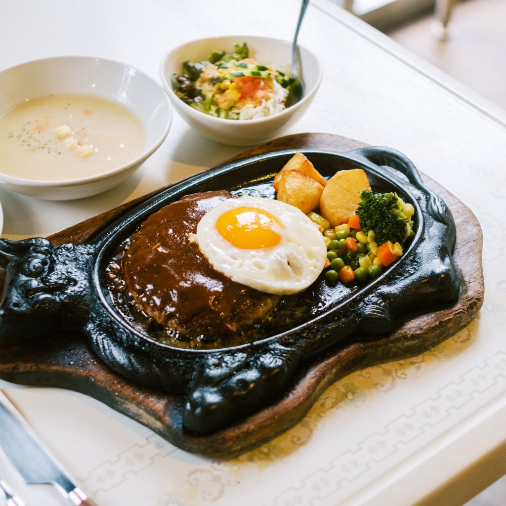 創業から引き継がれてきた、当店の特製ハンバーグ